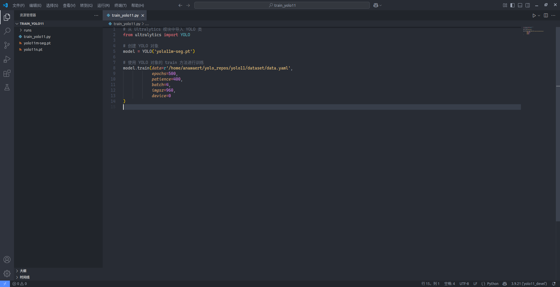的环境,则需要在 VSCode 中将解释器设置为 3.9.21 ('yolo11_devel')