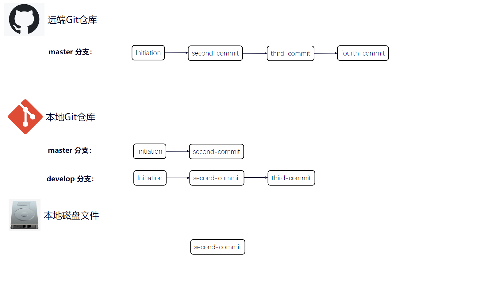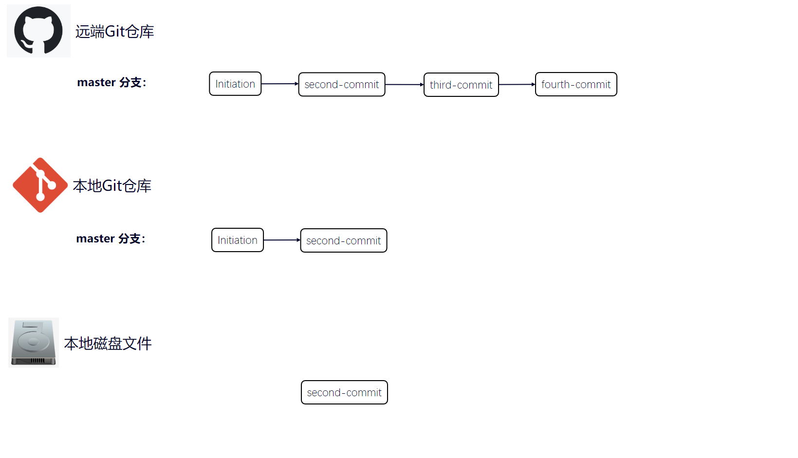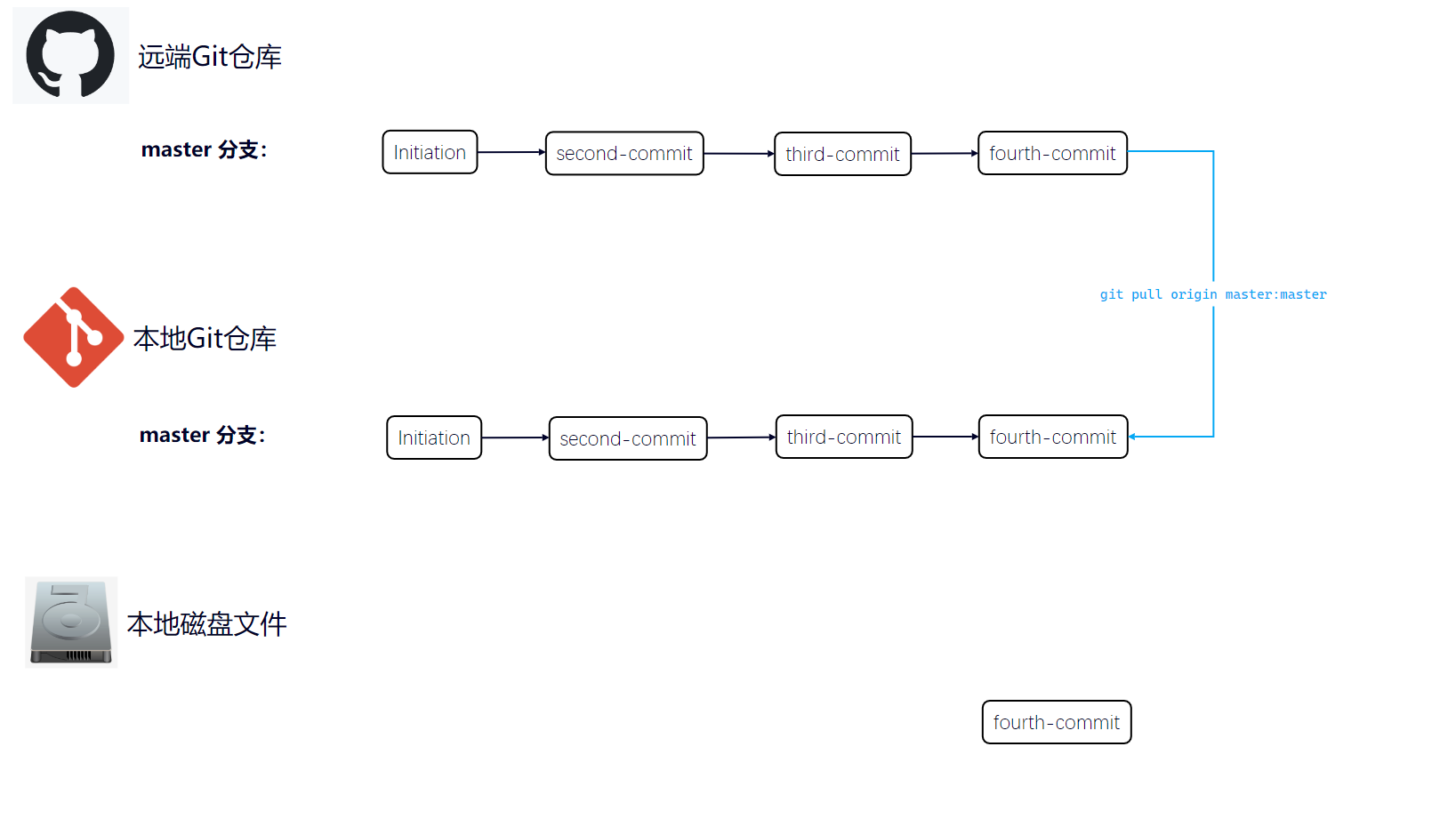 这样,我们的本地仓库与远端仓库的进度又统一了。从 fourth-commit 这个位置开始,重复上述的操作,即可完成新一轮的代码提交与项目贡献。