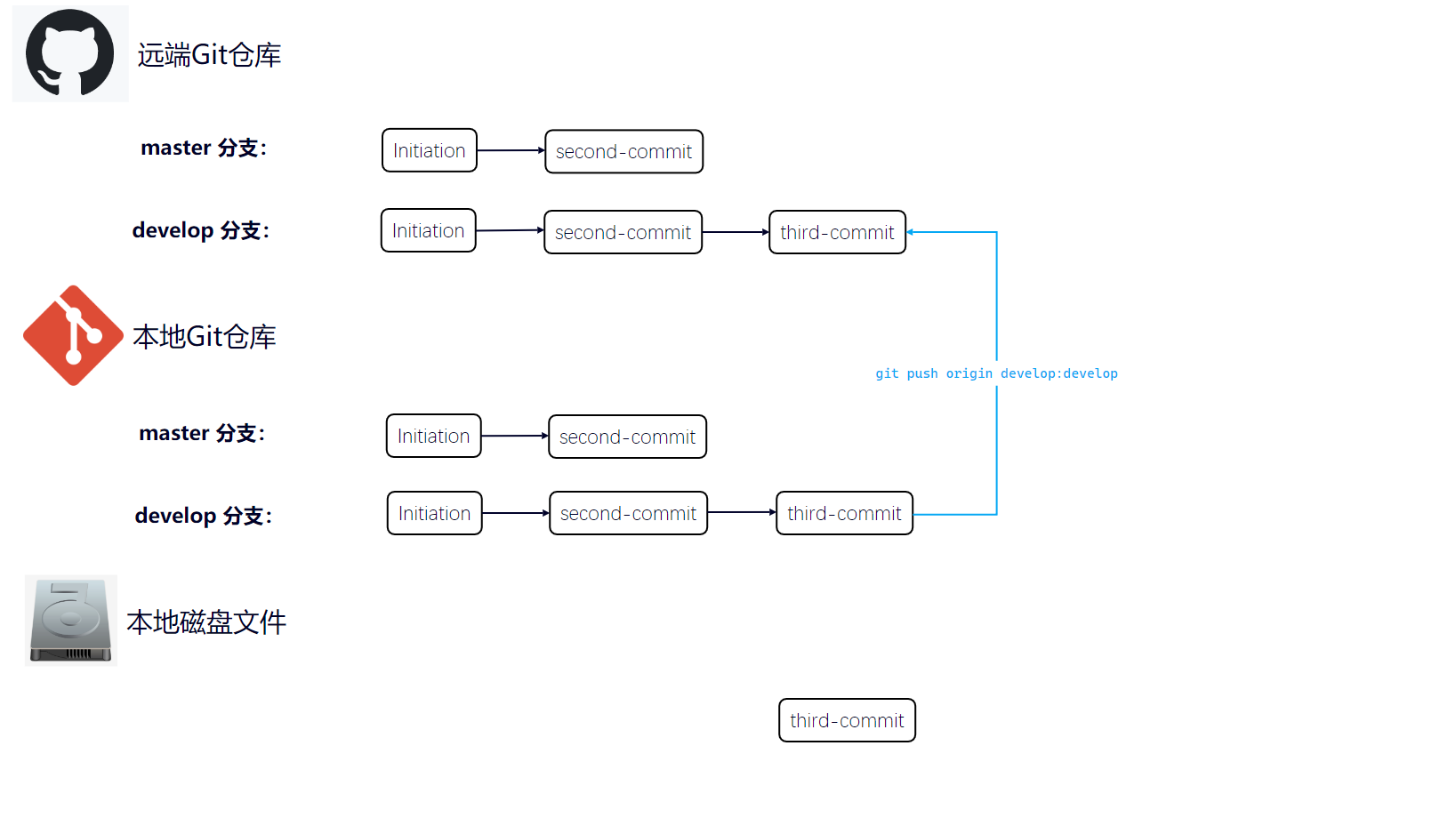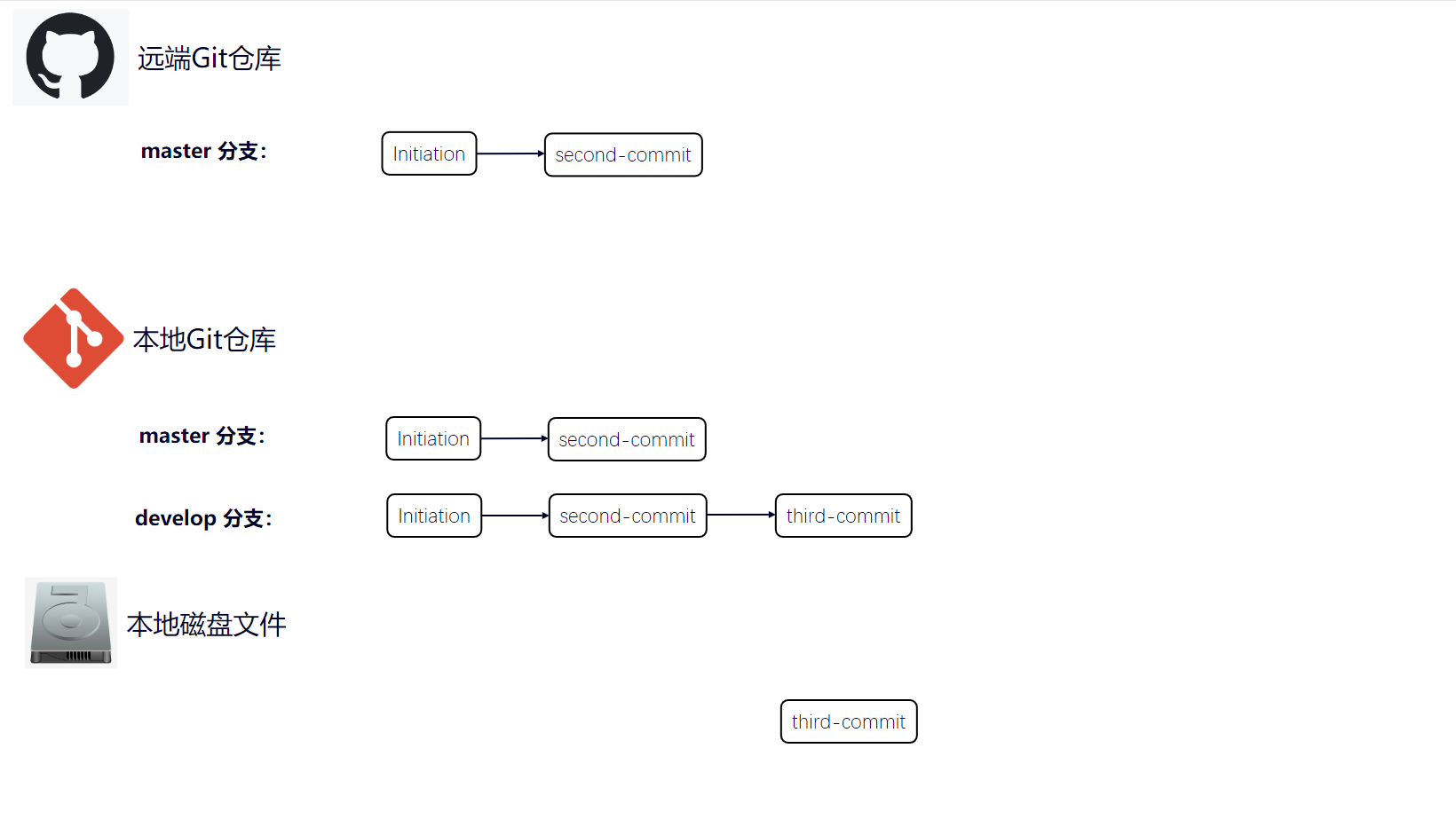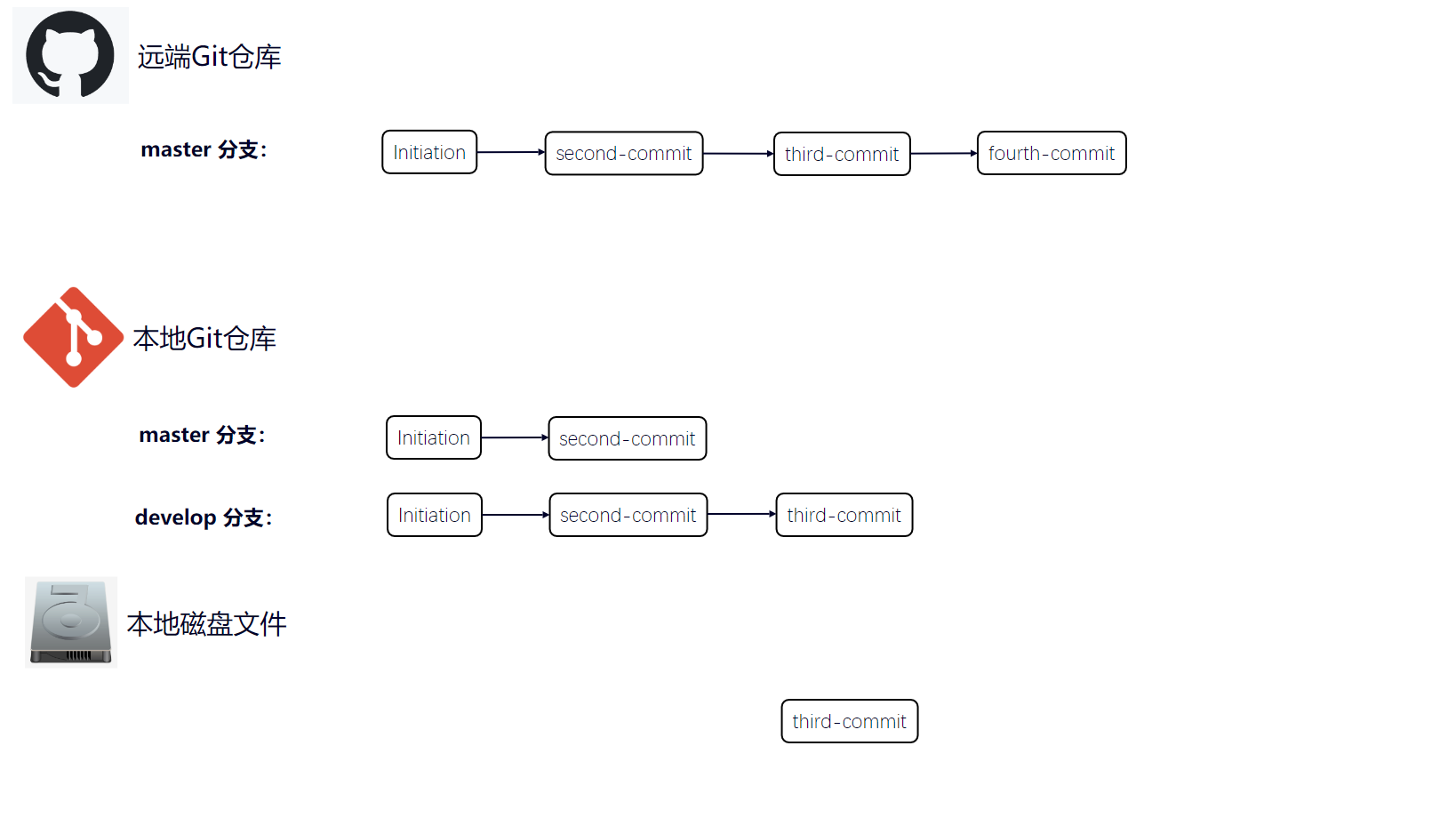 这样,我们的本地仓库与远端仓库的进度又统一了。从 fourth-commit 这个位置开始,重复上述的操作,即可完成新一轮的代码提交与项目贡献。