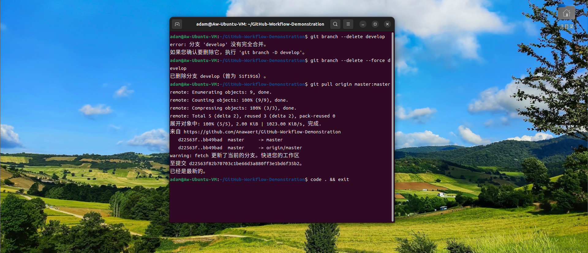 在本文示例中,由于 develop 分支显然与 master 分支未合并,因此删除它需要强制删除,即需使用 --force