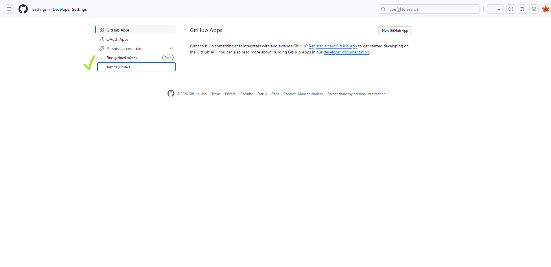 在开发者设置中,在左边栏中最下端找到“个人许可令牌”,选择“令牌(经典)”: