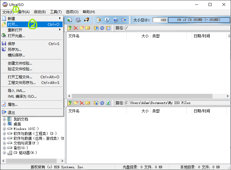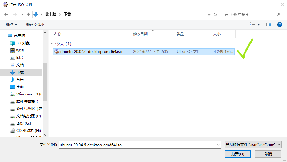 我们在菜单栏点击“文件”,选择“打开”,然后打开我们刚才下载的镜像文件: