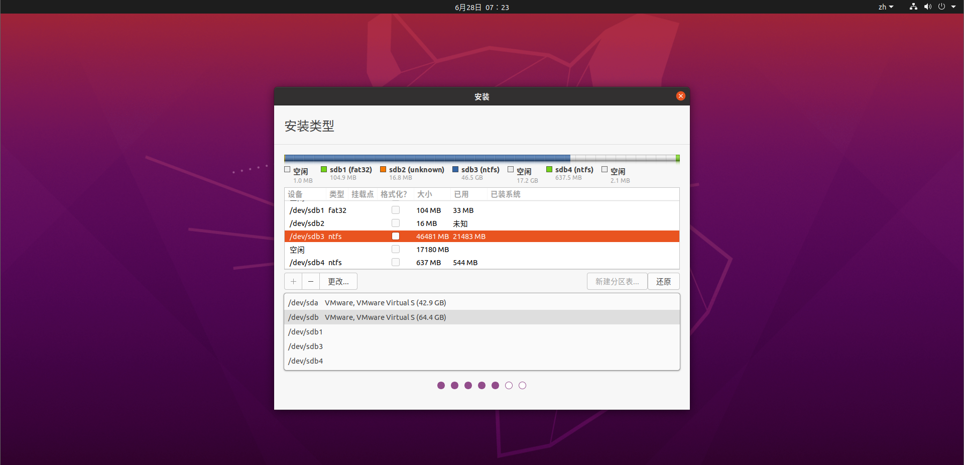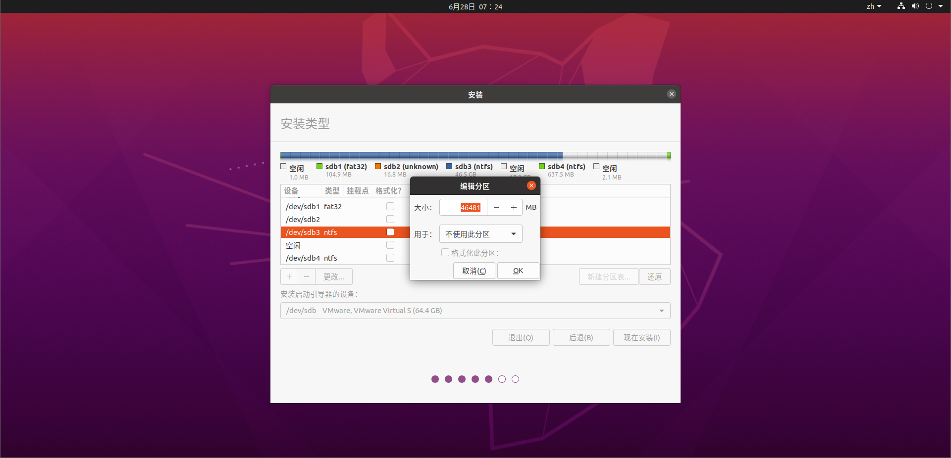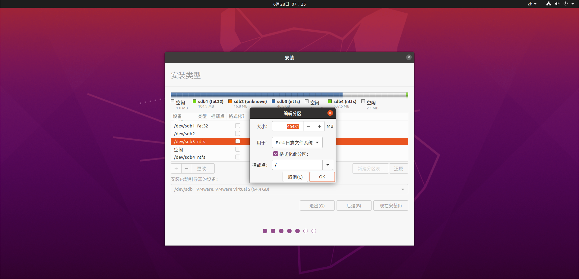 等待片刻后,即可看到如图所示的界面。此时“/dev/sdb3分区”的挂载点已被标为“/