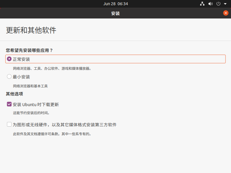 有读者可能发现了,这时屏幕的显示似乎已经正常。这就是 Ubuntu(安装时)的自调整。因此前面已经说明了,若不是持续地出现显示不全的情况,则无需担心。