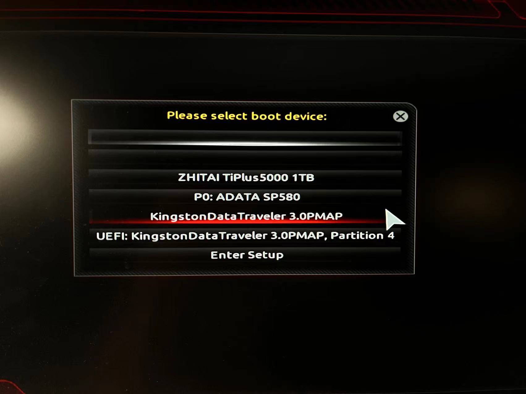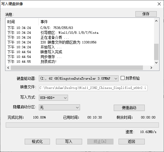 细心的朋友可能已经发现了,上面这张图中的U盘与前面的图中的不一样。是的,由于前面的那枚 SanDisk U盘速度太慢,在写稿时发现它需要动辄近 45 分钟的制作时间,于是我换将U盘换成了一枚 Kingston DTSE9 Gen3 以提升效率,此处不代表制作启动U盘需要特定品牌U盘或特殊容量(当然,必须大于等于 16GiB)。