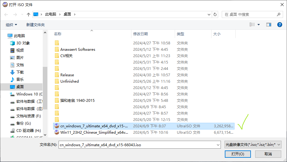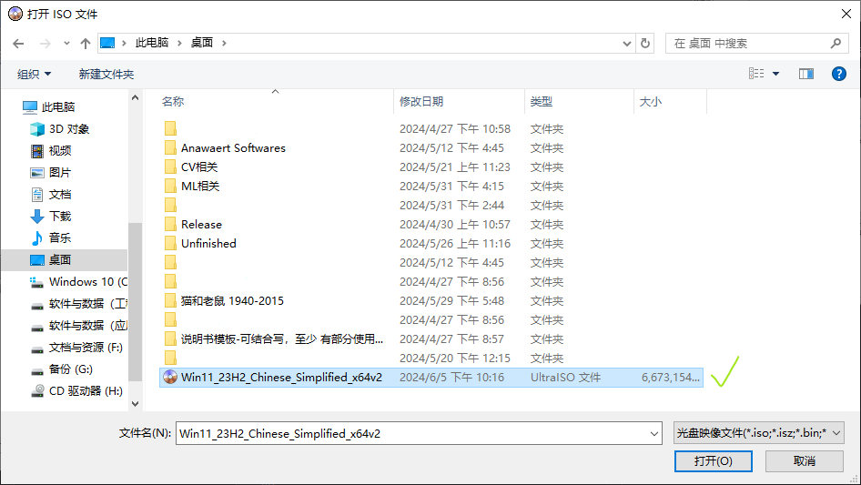 我们在菜单栏点击“文件”,选择“打开”,然后打开我们刚才下载的镜像文件,例如我下载到了“桌面”: