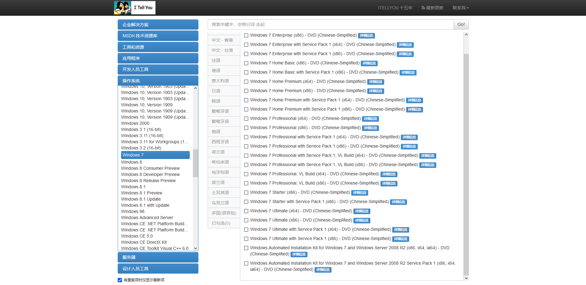 在完成上述两个软件的安装后,我们还需要准备系统镜像。由于这两个系统早已停止维护,因此我们从 MSDN,我告诉你 的旧站进行下载。