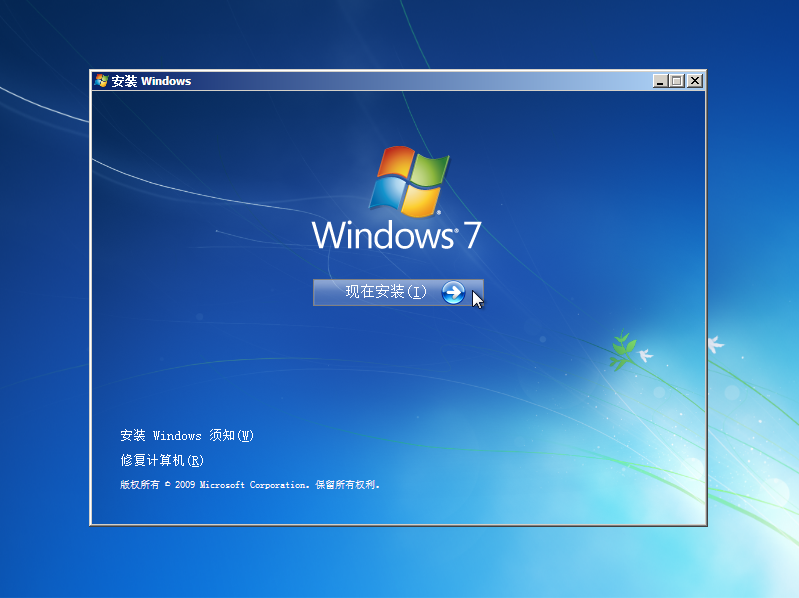 很快,我们进入了 Windows 7 安装引导界面。在这个界面,我们可以选择需要的语言、时间、货币格式和键盘的输入法。