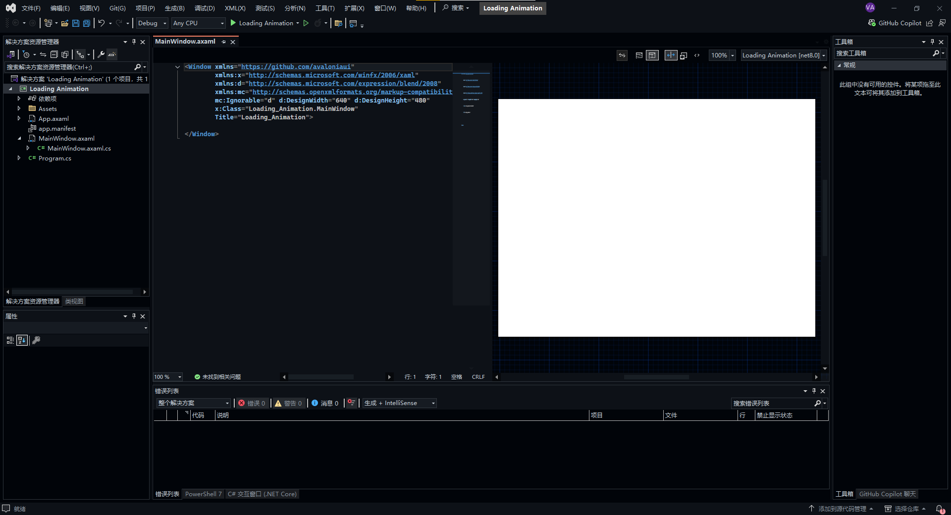碍于篇幅原因,本文不予叙述如何安装 Avalonia Templates。我们打开 Visual Studio,创建一个 Avalonia .NET App: