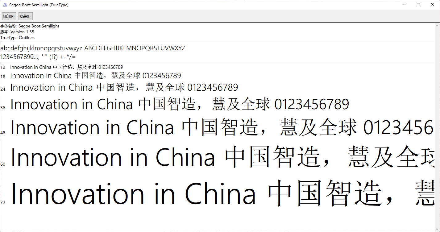 因此,需要我们从网上下载一个字体,名叫 Segoe Boot Semilight。一般来说,如果下载正确,那么在资源管理器中会看到这么一个 .ttf