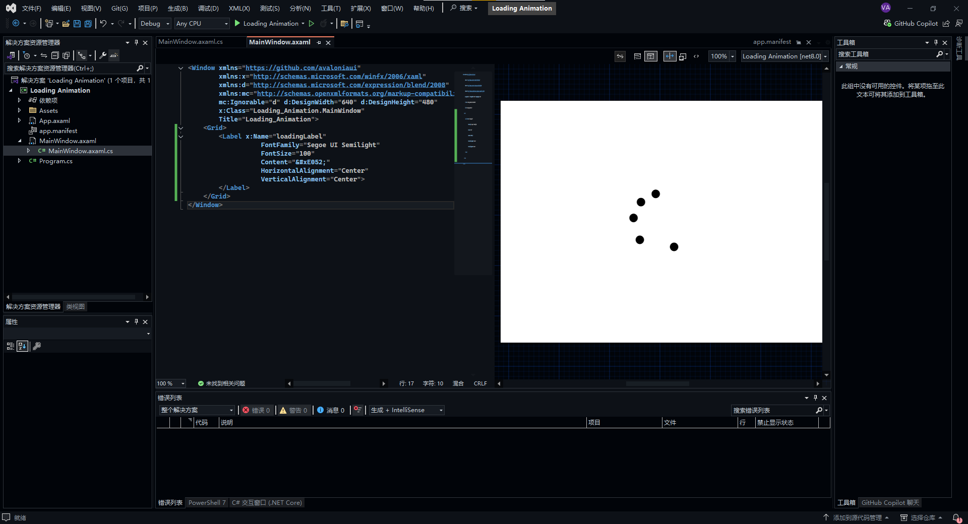 封装成一个函数或类,或者拓展一下 WPF/Avalonia 中的动画,就可以在许多地方用上这个加载动画,以增强应用与用户之间的交互性。
